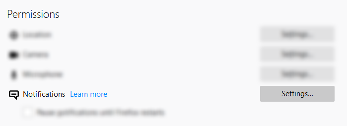 Scroll down to the Permissions section, then click "Settings" to the right of Notifications