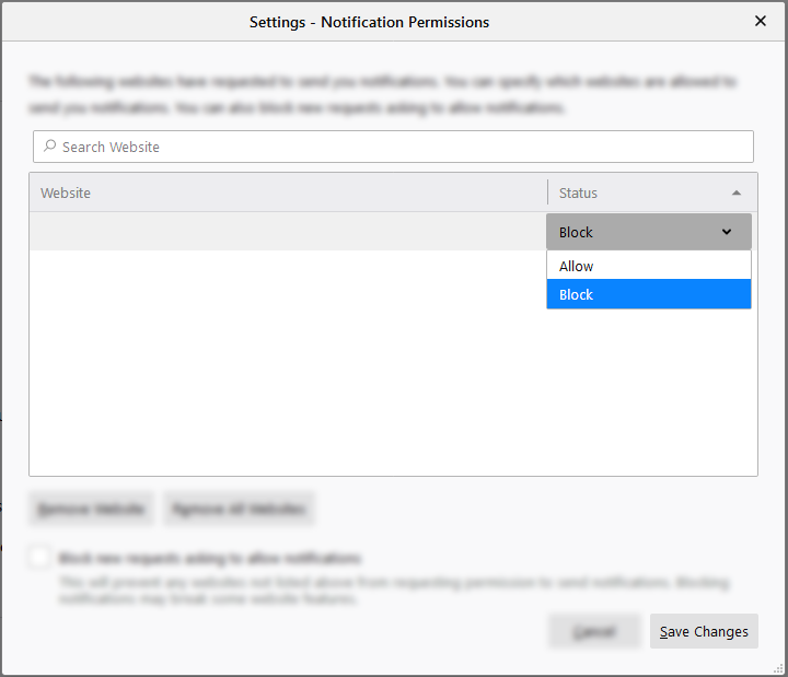 Click on the three vertical dots next to the site that you want to block push notifications from